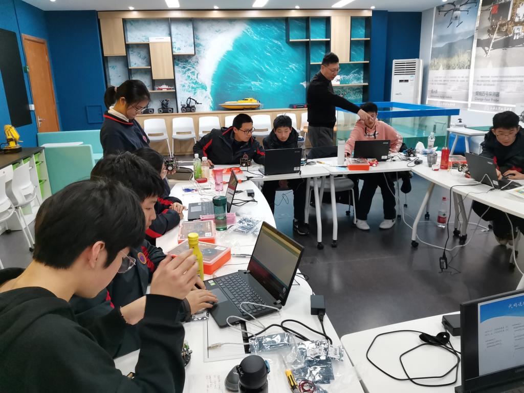 开源硬件课程同上海交通大学电子信息工程学院合作,以智能交通为主题,将循迹小车与生活实际相结合。同学们通过活动深入实践了Arduino项目的电路设计与代码调试,提升了自己的项目实施与管理能力、团队合作能力。附中上海交大开源硬件与创客教育拓展基地,冬令营选拔中表现优异的同学还参与到上海市科艺中心-上海交大电院高校体验营的活动中,聆听交大教授关于大数据的信息安全、北斗导航系统、信息检索等多个前沿技术的科技讲座,并与全市高中生一起线上竞技,出色地完成了体验营活动要求的电子作品。