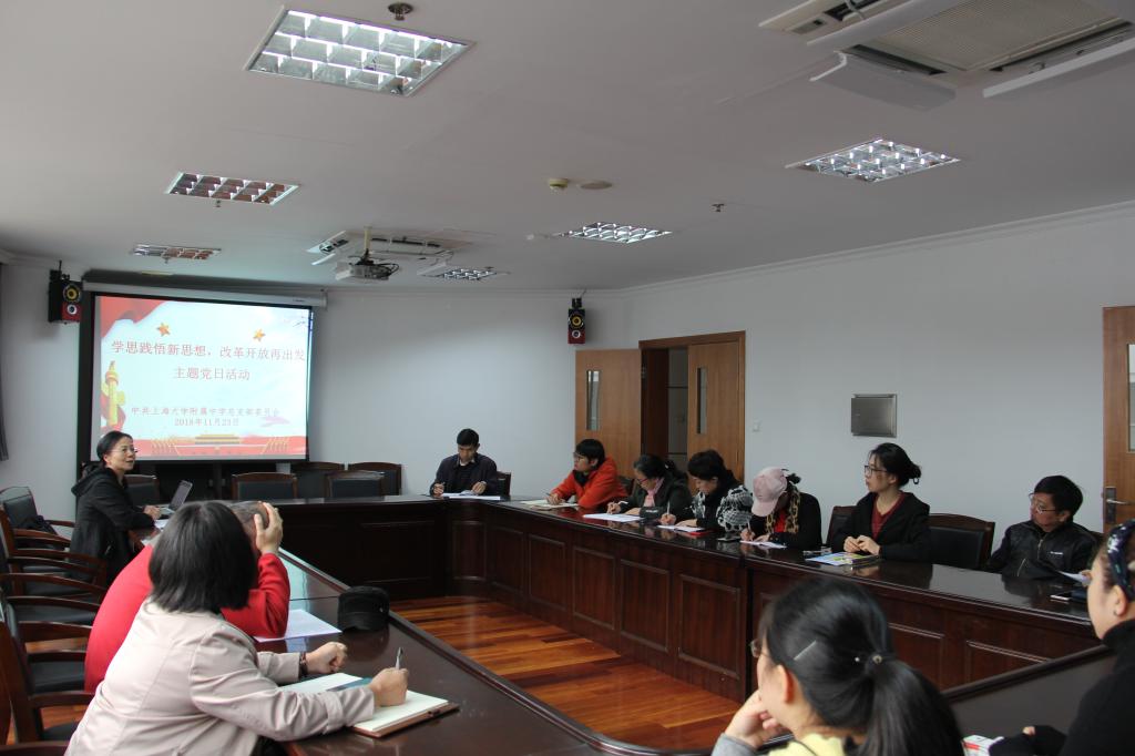 11月23日,学校党总支组织各支部党员深入学习领会习近平总书记在首届中国国际进口博览会开幕式上的主旨演讲和考察上海工作时的重要讲话精神,开展了“学思践悟新思想,改革开放再出发”主题党日活动。