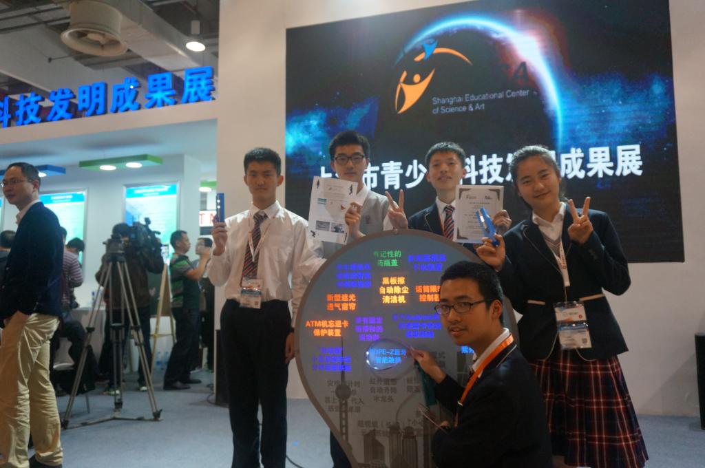 “上海市青少年科技创新发明展”的区域,是会场内最热闹的场所。在上海市科技艺术教育中心、上海市青少年科学研究院、上海创客教育联盟等的共同努力下,经过一年多时间的遴选、学生答辩、项目演示等环节,各团队在市区各部门的专家和导师们的帮助青少年顺利走完创新创业的“最后一公里”,最终21项经“上海市青少年创新创业团队行动”优化培育的学生科技创新项目亮相上交会。