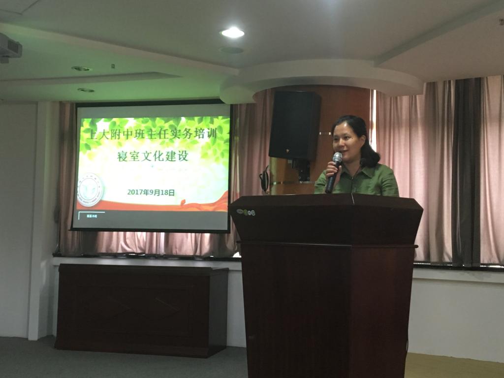 2017年9月18日下午,上大附中全体班主任和新进青年教师参加了主题为“寝室文化建设”的班主任实务培训。本次培训采用论坛互动模式,以现场头脑风暴的方式开展,把舞台交给班主任。
