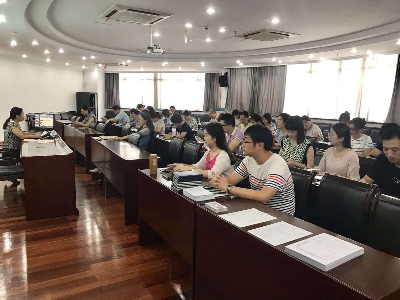 2017年8月29日上午,上大附中全体班主任齐聚一堂,参加2017学年第一学期首次班主任培训,会议由学生处主任顾敏霞主任。