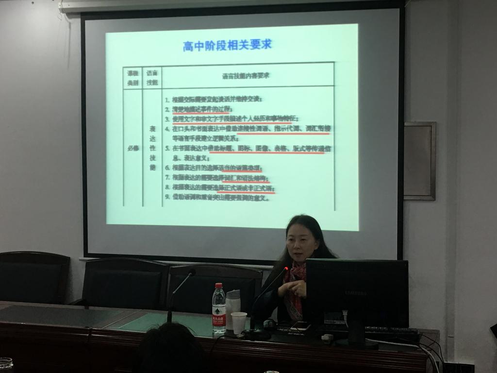 本次活动由上海市徐汇区高中英语教研员孟莎老师担任主讲,孟老师作了题为“单元视角下的高中英语写作教学”的主题讲座。孟莎老师从“单元”和“写作”二词的定义入手,以理论为依托,结合众多教学案例,阐释了单元设计的重要意义,并将基于单元整体设计的写作教学细化为四个方面,即三年整体规划、基于自然单元主题、学习写作技巧以及注重写作过程。在新课标的语境下,孟老师的讲座给予在场教师很大的启发和指导。区英语学科研究团队2的成员及上大附中英语组老师一同参加了讲座。
